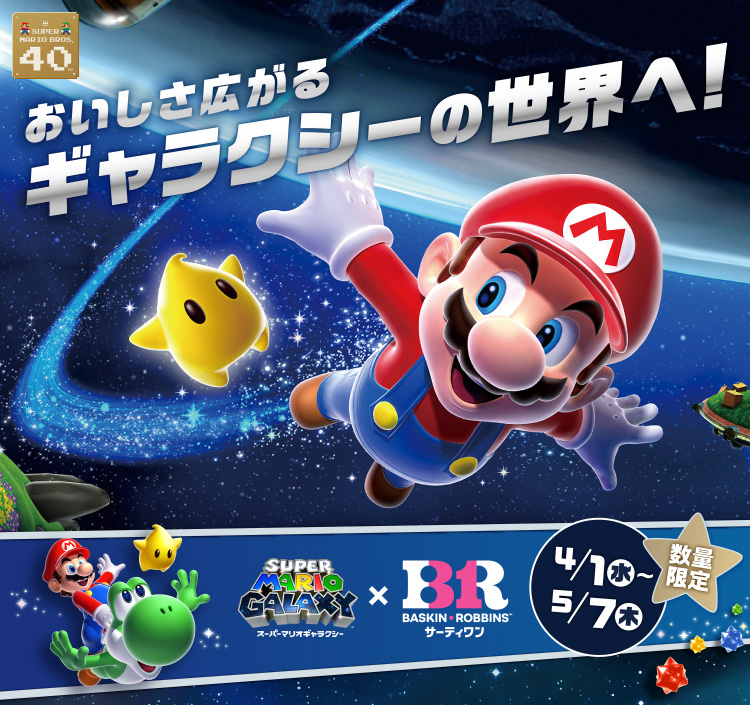 サーティワンアイスクリームは、『スーパーマリオギャラクシー』とのコラボキャンペーンを2026年4月1日から5月7日までの期間限定で開催する。